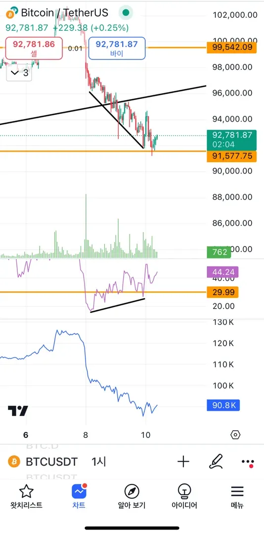 추가로 한시간봉 하락 다이버전스 찾아보았습니다 항상 감사합니더😊