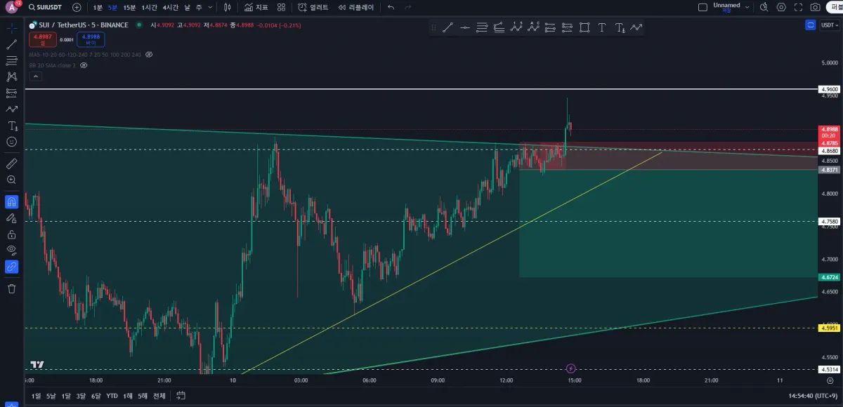 잦은 리테스트로 인해 상방 저항선이 뚫릴껄 예상해서 빠른 손절이 필요했지만 그러지 못했습니다 ㅠㅠ