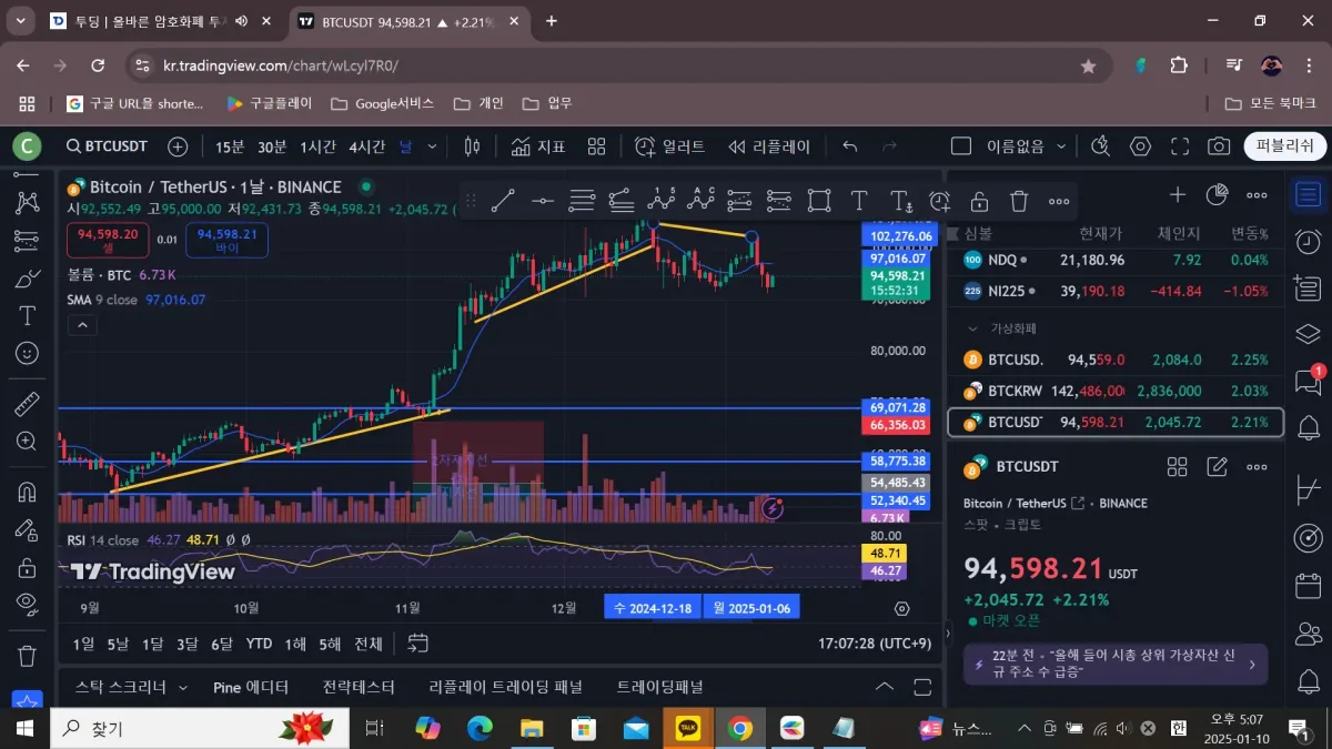 우선 1일을 기준으로 한 차트에서 작도를 했구요.