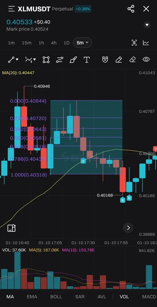 1. 가격이 4시간봉 기준으로 하락추세선을 상방으로 돌파하는게 보였고, 5분봉 기준으로 피보나치 되돌림 0.618 ~ 0.786 사이에 위치하여 롱 진입했습니다.