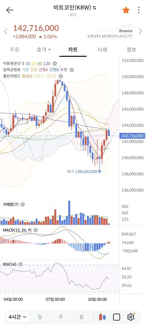 7일차 강의를 듣고 비트코인 추세를 하락할것으로 예상하여 7일 시세보다 7%~15% 하락된 금액으로 예약 매수 하였고 10일 현재까지 홀딩중입니다.