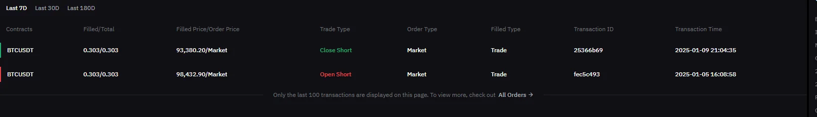 그 결과 조금 올랐다가 제법 큰 하락이 있었고 그 결과 레버리지 3배, 98,432 숏포지션 진입 -> 93,380 포지션 종료로 모의투자이지만 제법 큰 수익을 얻을 수 있었습니다.