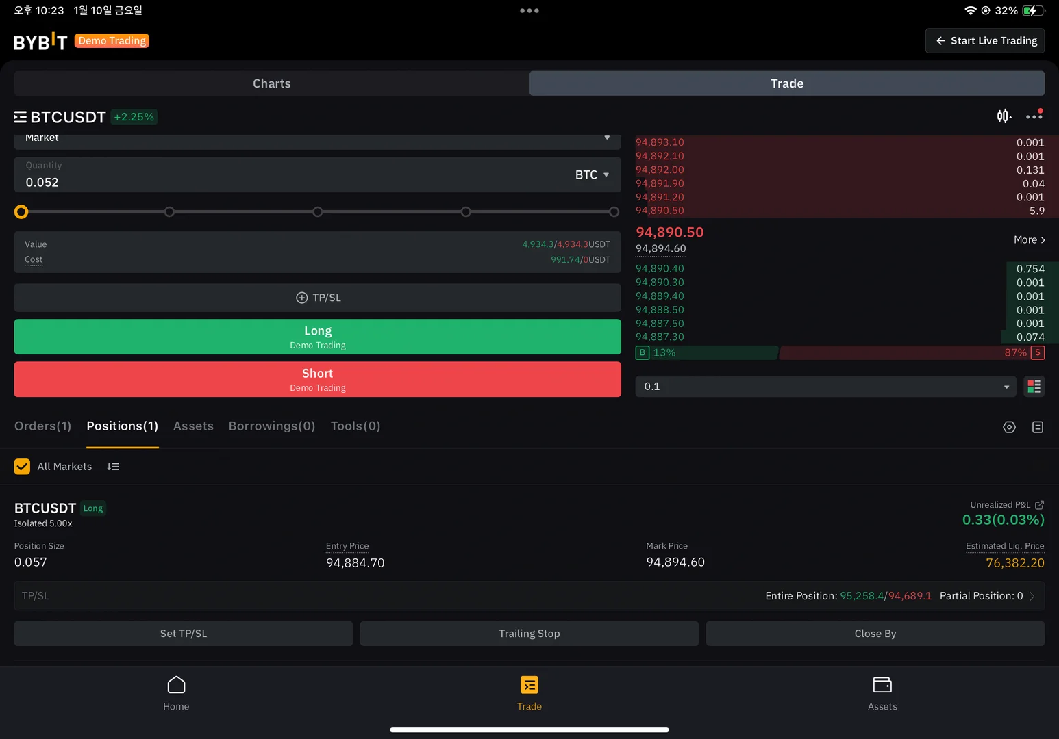 3주차 때 처음 모의트레이딩을 접했는데 그땐 무슨 버튼이 뭔지도 모르고 글을 썼었습니다. 다른 분들 게시물을 보면 매수, 매도 하시는게 능수능란 하신데 저는 이것부터 시작해야한다 생각하니 너무 막막하네요ㅠㅠ.. 그래도 일 끝나고 시간 내서 유트브 보고 이것 저것 눌러보니 어찌저찌 포지션 하나 생성하는 것에 성공했습니다! 사실 이걸 하기 위해서 유트브에서 뭐뭐를 눌러야한다고 해서 따라 눌러보기만 한거여서 다른 분들이 보시기엔 이게 뭐야? 라고 생각이 드실 수도 있을거 같아요ㅋㅋㅋㅋ 저는 일단 수익을 내는것 보다는 그동안의 강의를 복습하면서 거래소 이용법을 더 공부할 것 같습니다! 그래도 끝까지 남고 싶어 매매일지를 빌미삼아 미션글을 올려 보아요