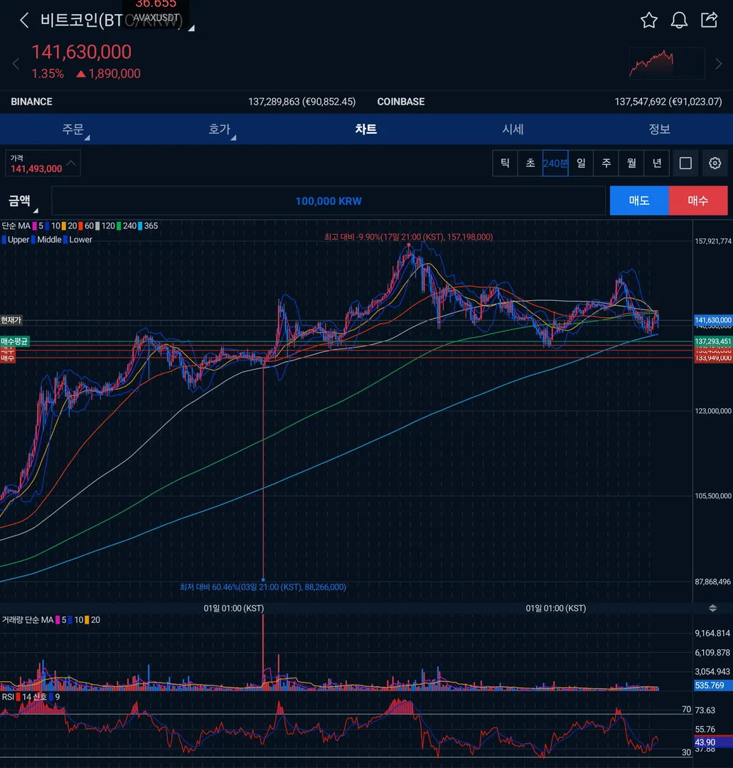 업비트 상으로는 아직 양전이지만, 결과적으로 저의 예상이 틀려 실질적인 음전중인 상황이라 보고 있습니다.
