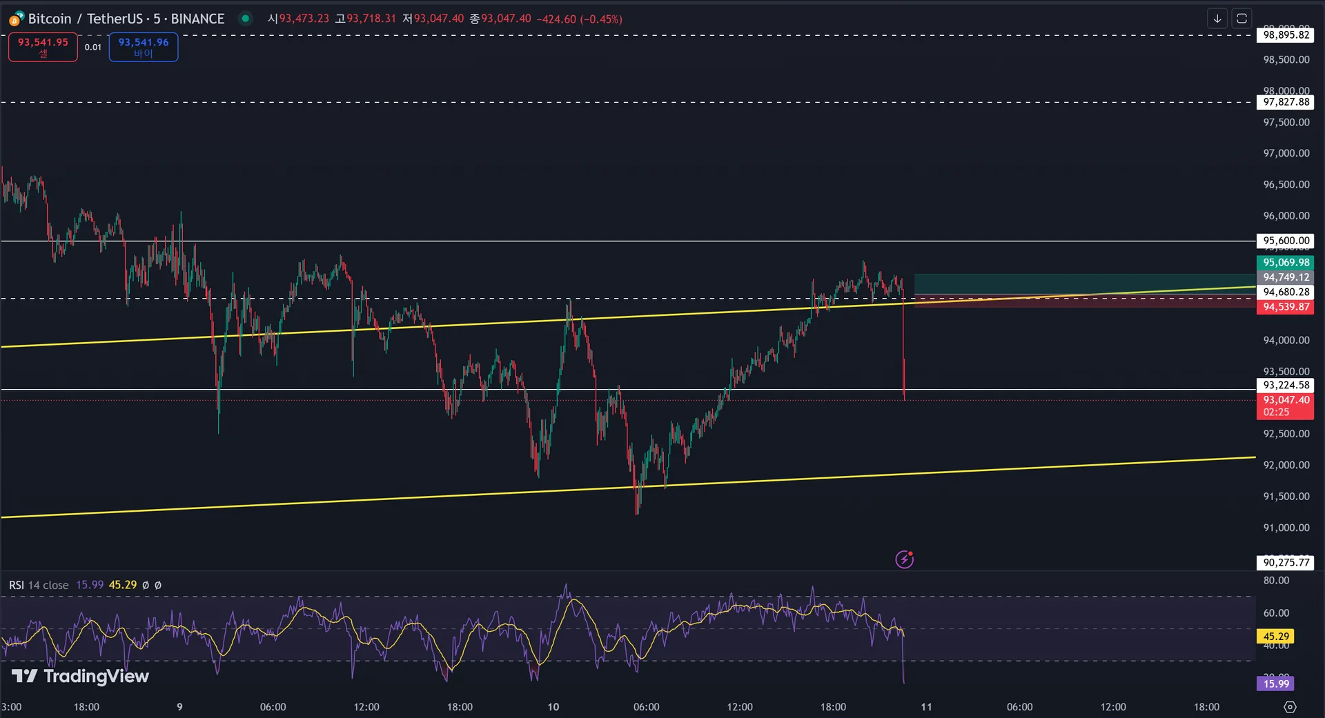 진입 근거는 제 나름의 추세선이 지지선이 되어 잘 지지해주고 있었고 상승추세여서 쉽게 단타로 이득을 보려했는데