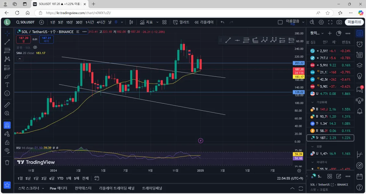 하락추세선 리테스트 구간에 닿은 날 추가 매수 하였고 현재는 손실 중에 있습니다.