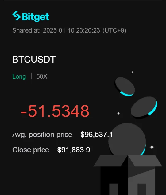 비트코인의 102K 이후 지지선을 뚫고 내려오는 매도 추세에서 노란색 선처럼 96.5K의 지지선을 맞고 상승하는것으로 보고 롱 진입하였지만,