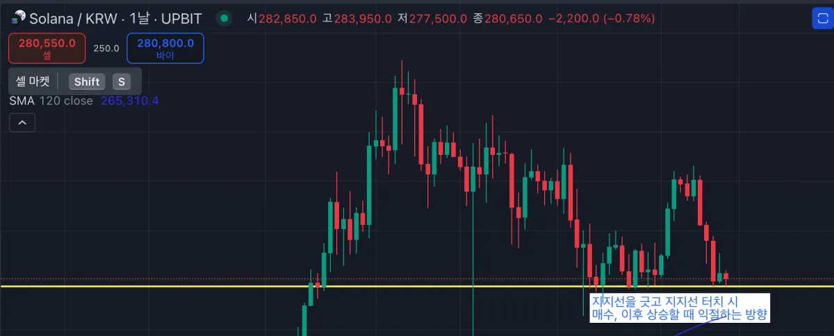 지지선에 따라 지지선을 터치하면 매수했다 상승 후 익절하는 것을 시도했는데, 익절을 하긴했으나 매도 포인트를 잘 잡지 못하겠습니다.