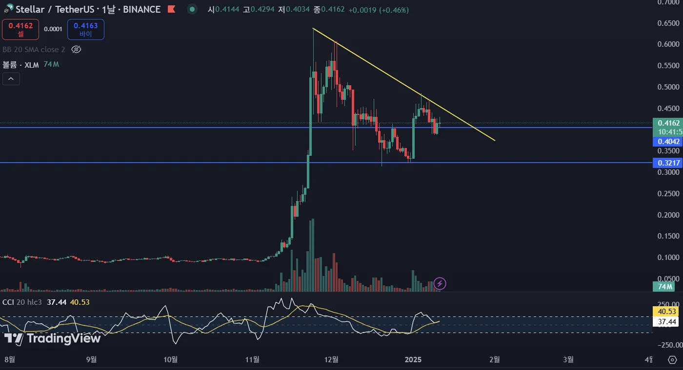 아직 진입하지 않고 관망하고 있습니다. 리플과 스텔라루멘은 연관성이 있는 코인이다보니 비슷한 차트를 보이고 있습니다.