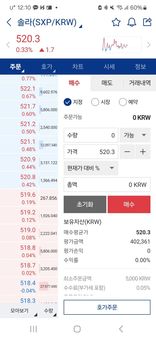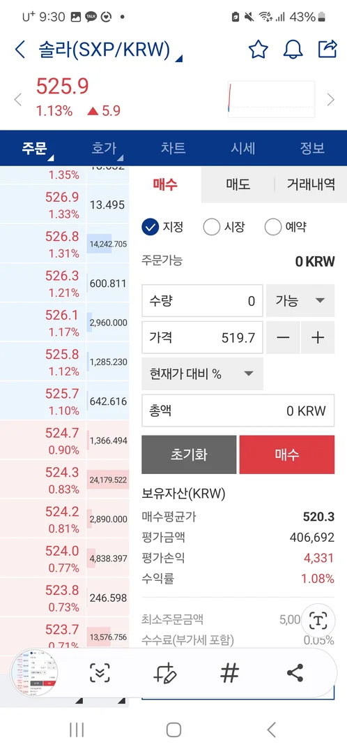 솔라 매수가 - 520.3원