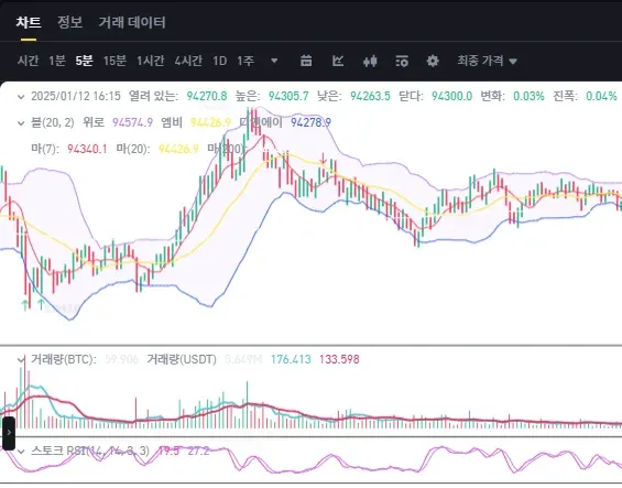 5분봉 기준으로 하락시 거래량이 올라오고 RSI수치가 내려간 것을 보고 롱 포지션으로 진입했습니다