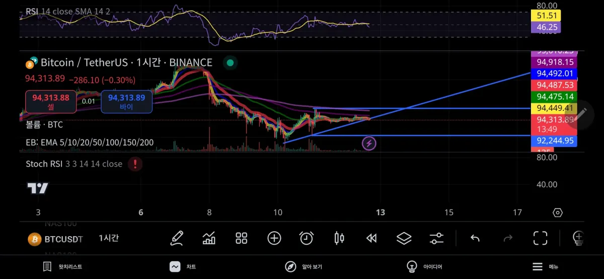현재 비트코인은 보합상태로 유지하다 지지선을 뚫고 내려가고 있는 것으로 보입니다.