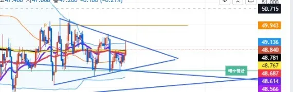 삼각수렴중인 코인을 발견하여 방향이 나온뒤 진입했어야하지만 위로 오를거같다는 생각에 미리진입을 했다가 하방으로 터져서 손절했습니다.