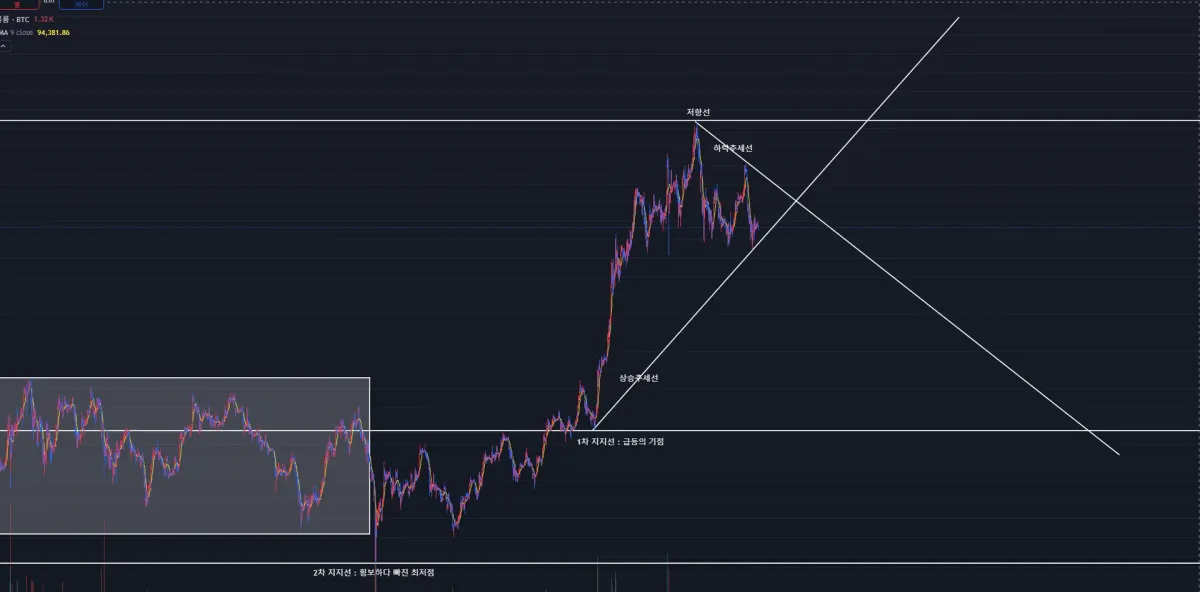 베이지컬리 실습강의 보면서 실습한 지지선과 상승, 하락 추세선 작도실습입니다.