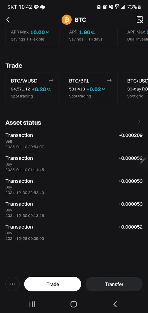 비트겟 거래 내역입니다. 일봉에허 볼밴 하단에서 매수를 5$씩 두번 정도 했었고 다른 한번은 일봉에서 중심선 터치 할 때 넘어서면 더 갈꺼 같아서.. (네... 느낌 매매 했습니다 ㅠㅠ) 최근에 다 팔았습니다 ^^;