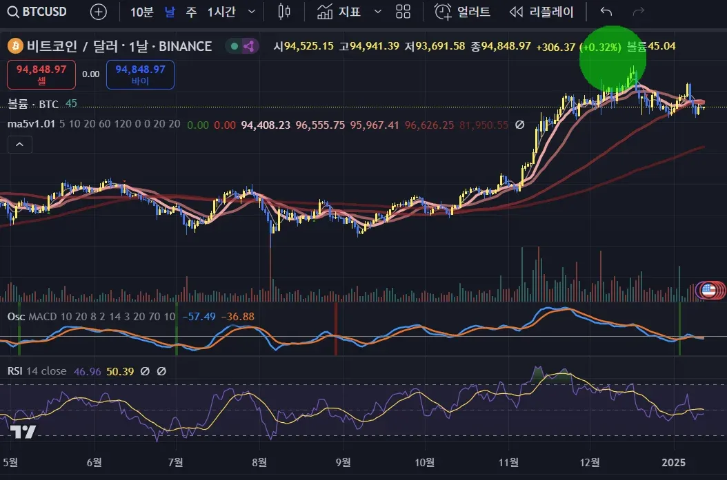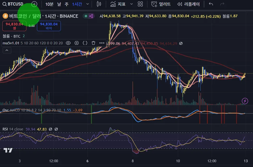현재 비트차트처럼 전고점근처에서 RSI가 상승할 여력이 더 남아있으면 전고점을 뚫고 신고점 뚫으러 갈 확률이 있으므로