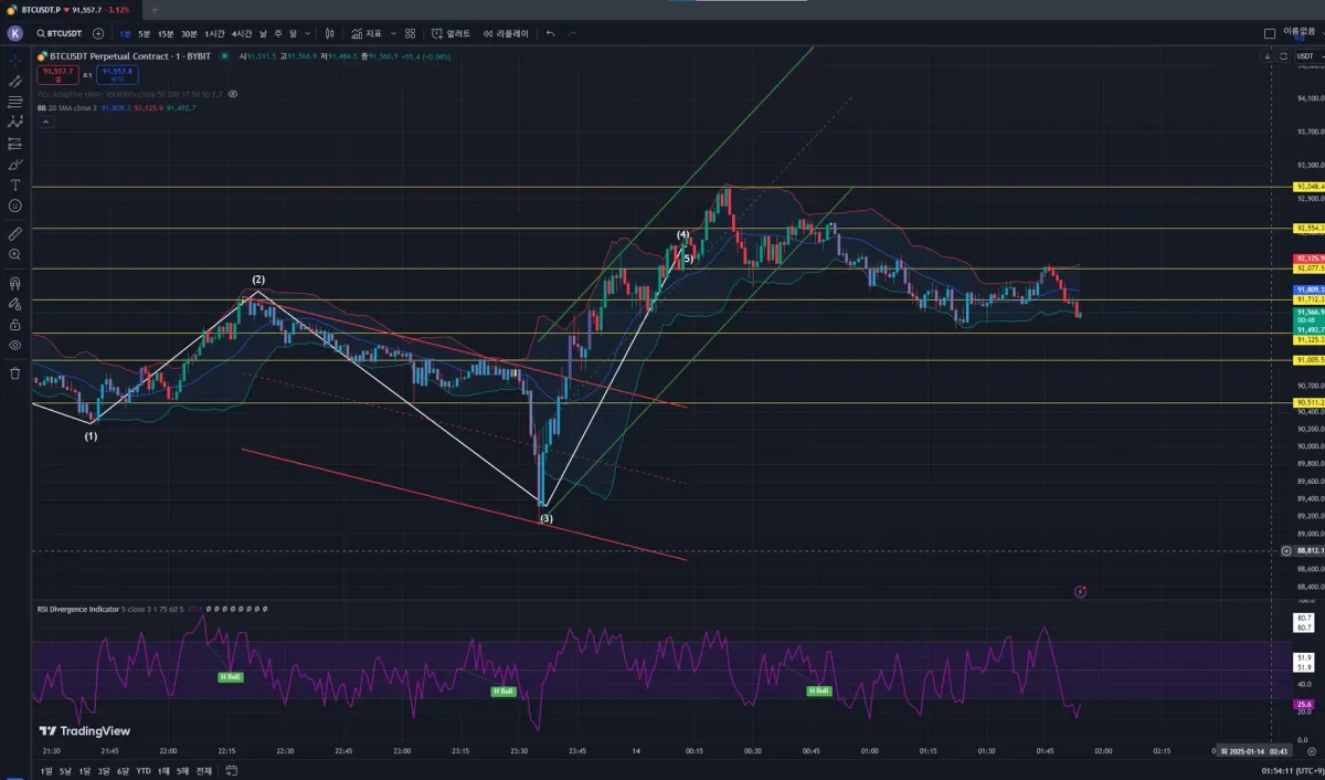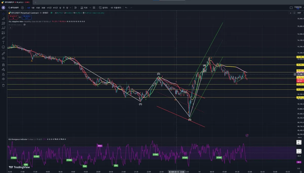 데모 트레이닝으로 매매하면서 hma200과 50일을 사용하였고 볼린저 밴드와 RSI를 번갈아가면서 추세를 파악하고 분석해서