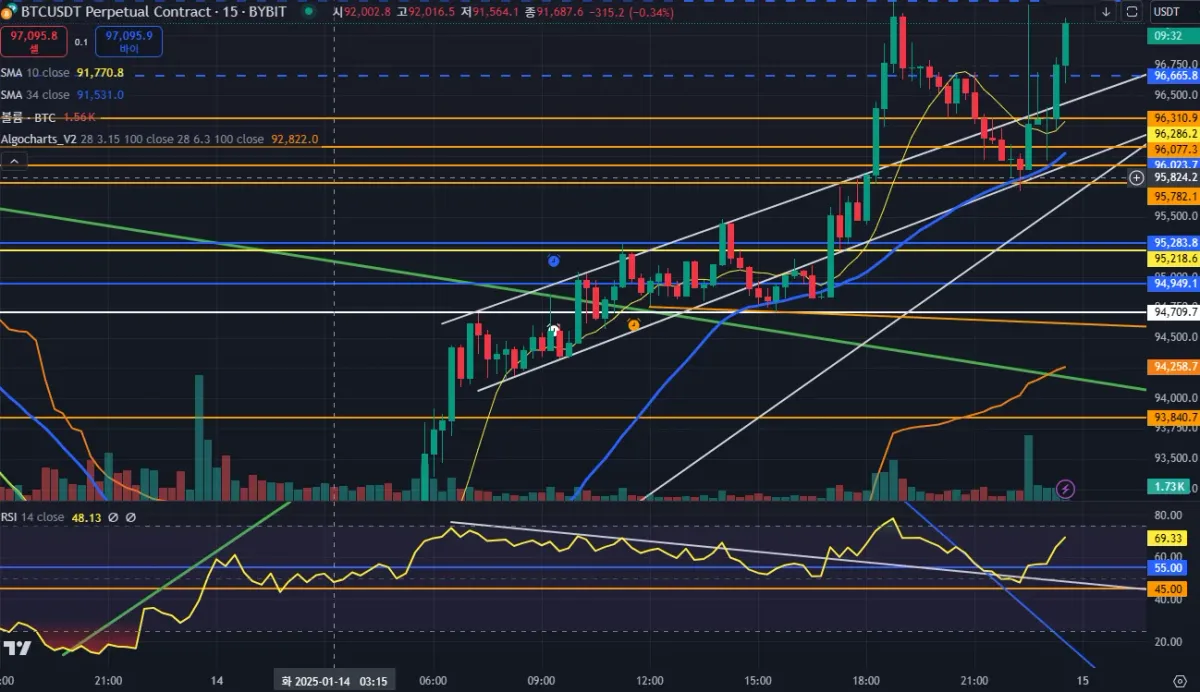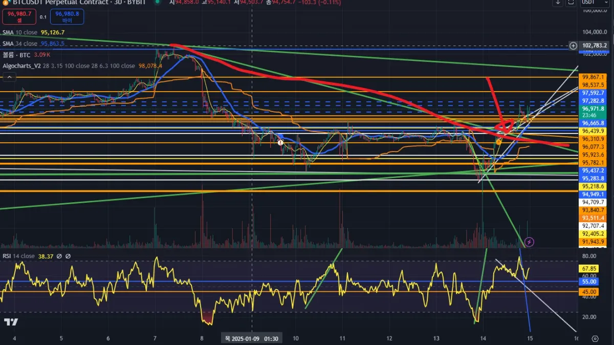 전략 : 이후에 눌림목 구간을 기다리고 전반적으로 상승을 길게 하락은 약 익절하고 / 각각의 의미있는 지지선과 저항선을 기준으로 손절을 정한다.