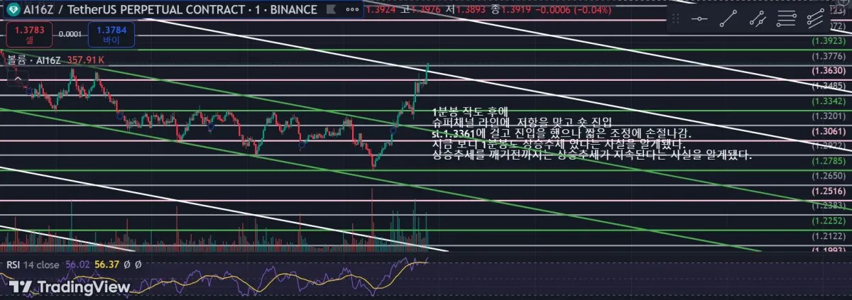 빙엑스 차트를 보던 중에 ai16z라는 차트를 1분봉 작도를 해보았습니다.