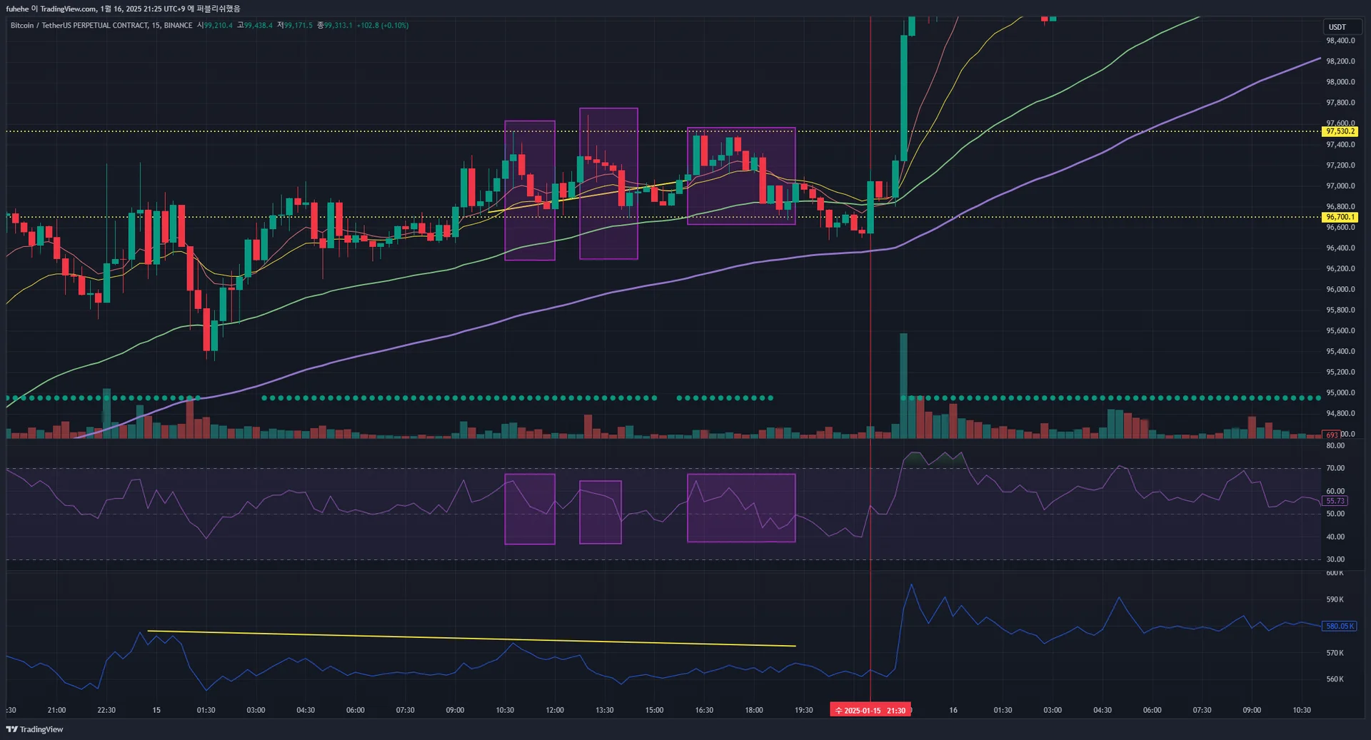 거래량, RSI, OBV 모두 다이버전스로 보였습니다.