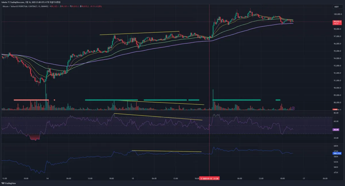 거래량, RSI, OBV 모두 다이버전스로 보였습니다.
