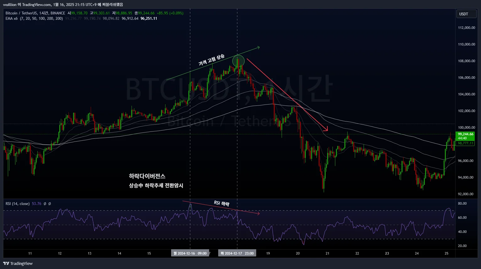 11일차 과제인 RSI 지표 추가 외에 다이버전스 찾아보는 연습도 해봤습니다!