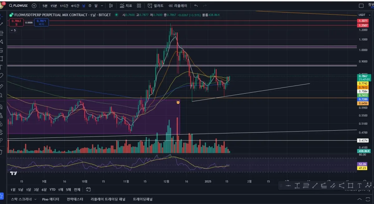 이건 플로우 차트인데 이동평균선을 봤을때 60일 이평선이 제일 위에있고 20일 이평선이 두번째 7일 이평선이 3번째로 나열되어있어요.