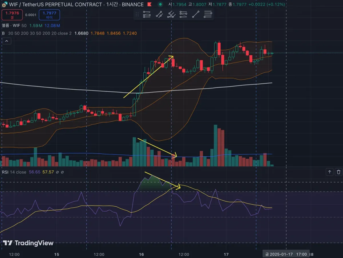 비트와 커플링되는 알트 중 rsi 과매수가 심한 종목 선정 (WIFUSDT.P)
