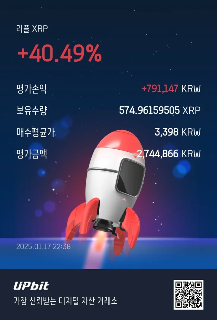 지금 가지고 있는 몇 개의 알트 가운데 현재로서는 가장 수익이 큰 종목이에요.