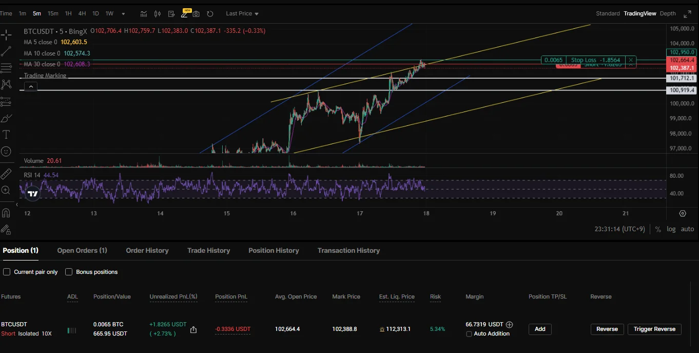 추가적으로 101.700 ~ 100.900 분할로 롱을 잡으면서 숏을 팔아갈 생각입니다.