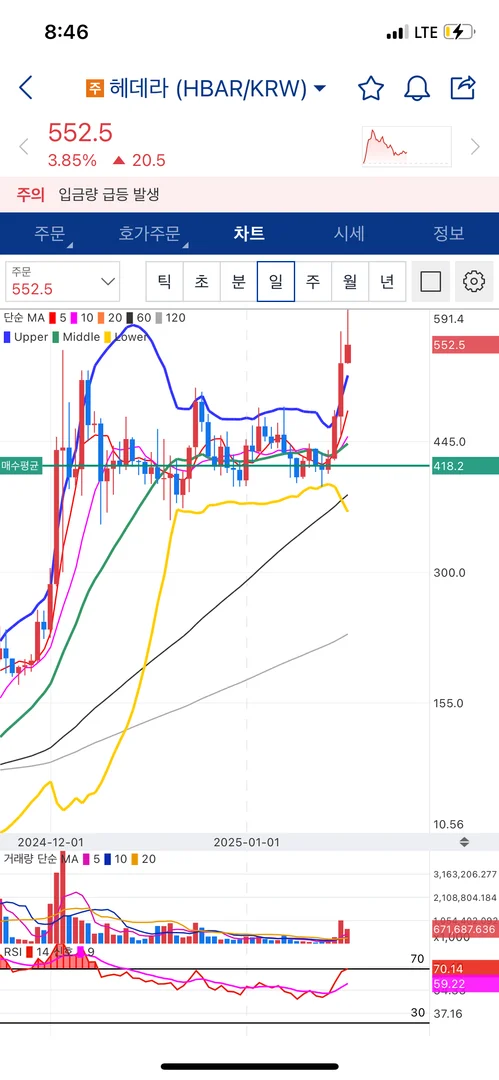 삼각수렴 -> 60일선 근접 -> 하단지지선 튼튼하다 생각 -> cpi발표 긍정적으러 기대되어 소액 진입, 수익중입니다😆