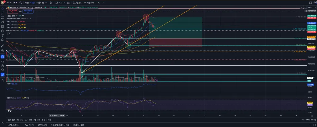 1) 주요 지지선인 99.6K에서 롱 포지션 진입