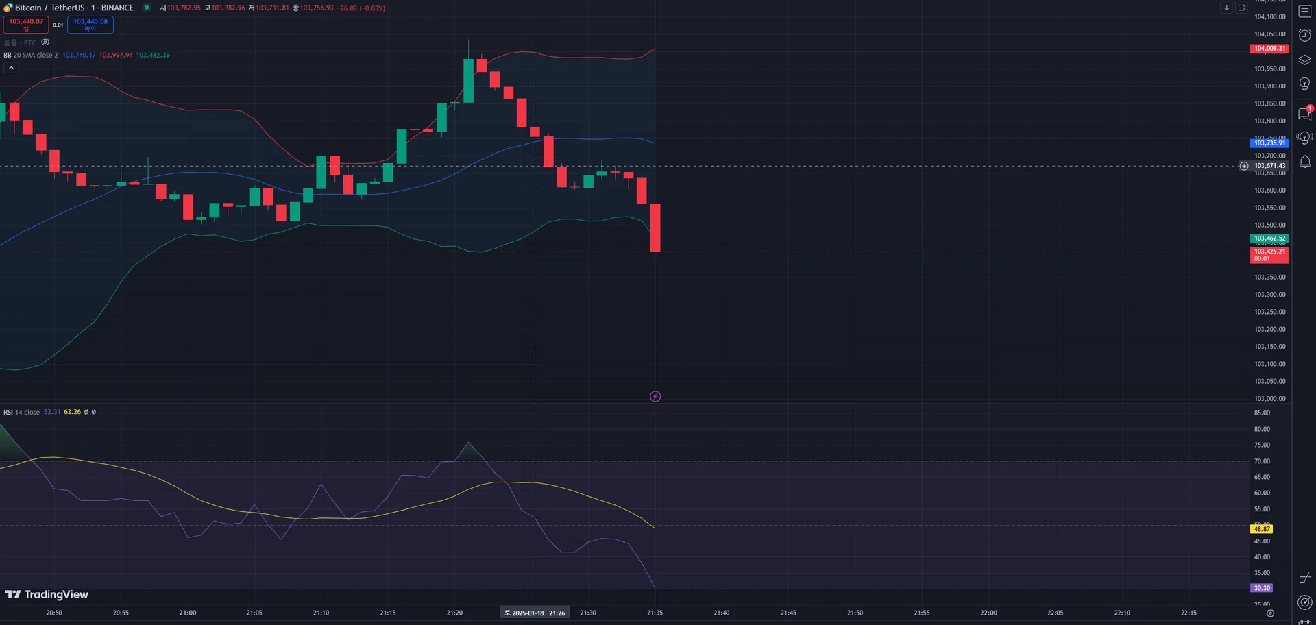 1분봉 볼린저밴드의 하단 이탈하여 롱포지션으로 들어갔습니다.