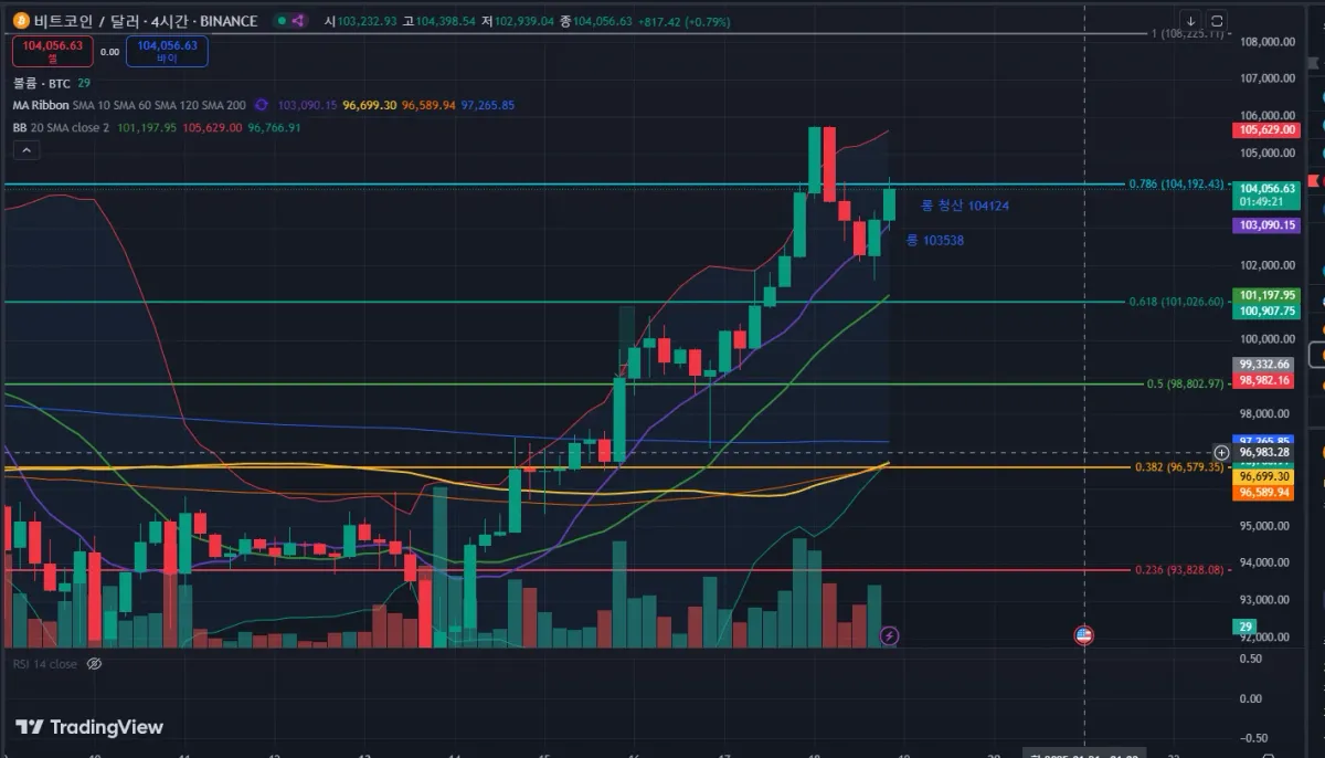 4시간 봉에서 10일선 지지확인 후 롱 포지션 진입