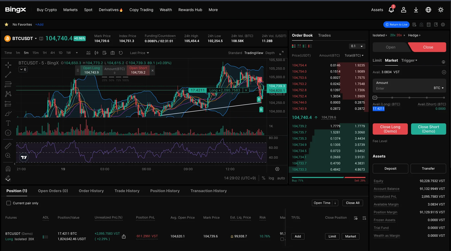15분 봉으로 모의투자 진행해서 반등 기회에 롱포지션으로 땄습니다 ㅎㅎ 저점에서 반등 힘실리는 것 보고 투자하는 마인드로 도전해보았습니다!
