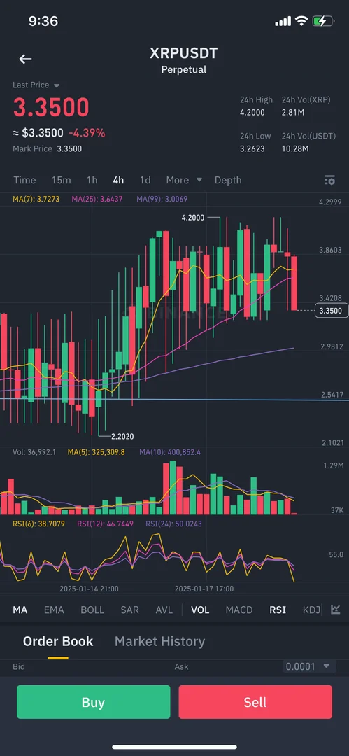 바이낸스에서 모의투자했습니다. 1/14일 rsi만 보고 오를 것으로 예상하고 이후 거래량이 늘어나면서 rsi지수 또한 올라 그대로 유지하고 있었습니다!