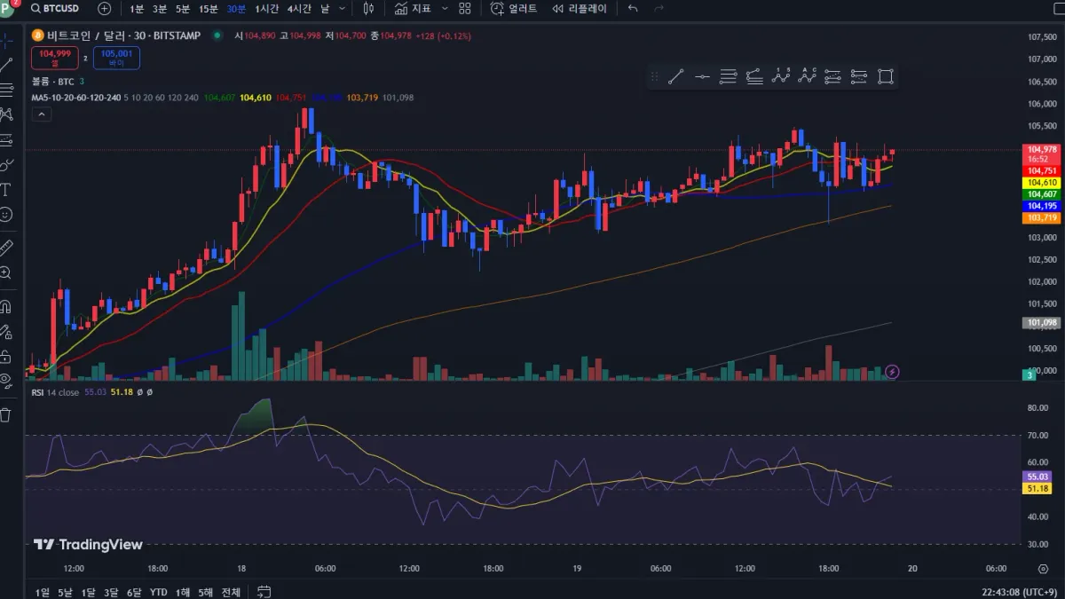 트뷰 사용 익숙치 않지만 강의대로 RSI 지표추가 해보았습니다~!