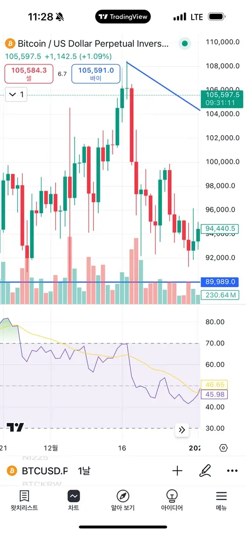 모바일 상으로 RSI 지표를 추가해보았습니다