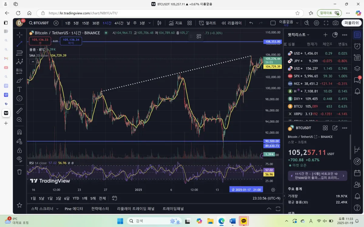 일봉과 1시간봉으로 지지와 저항을 그려봤는데요, 지금 현재 구간에서는 추세선이 고점은 연결이 되나 저점이 명확하게 그려지지 않아서 잘 모르겠습니다.