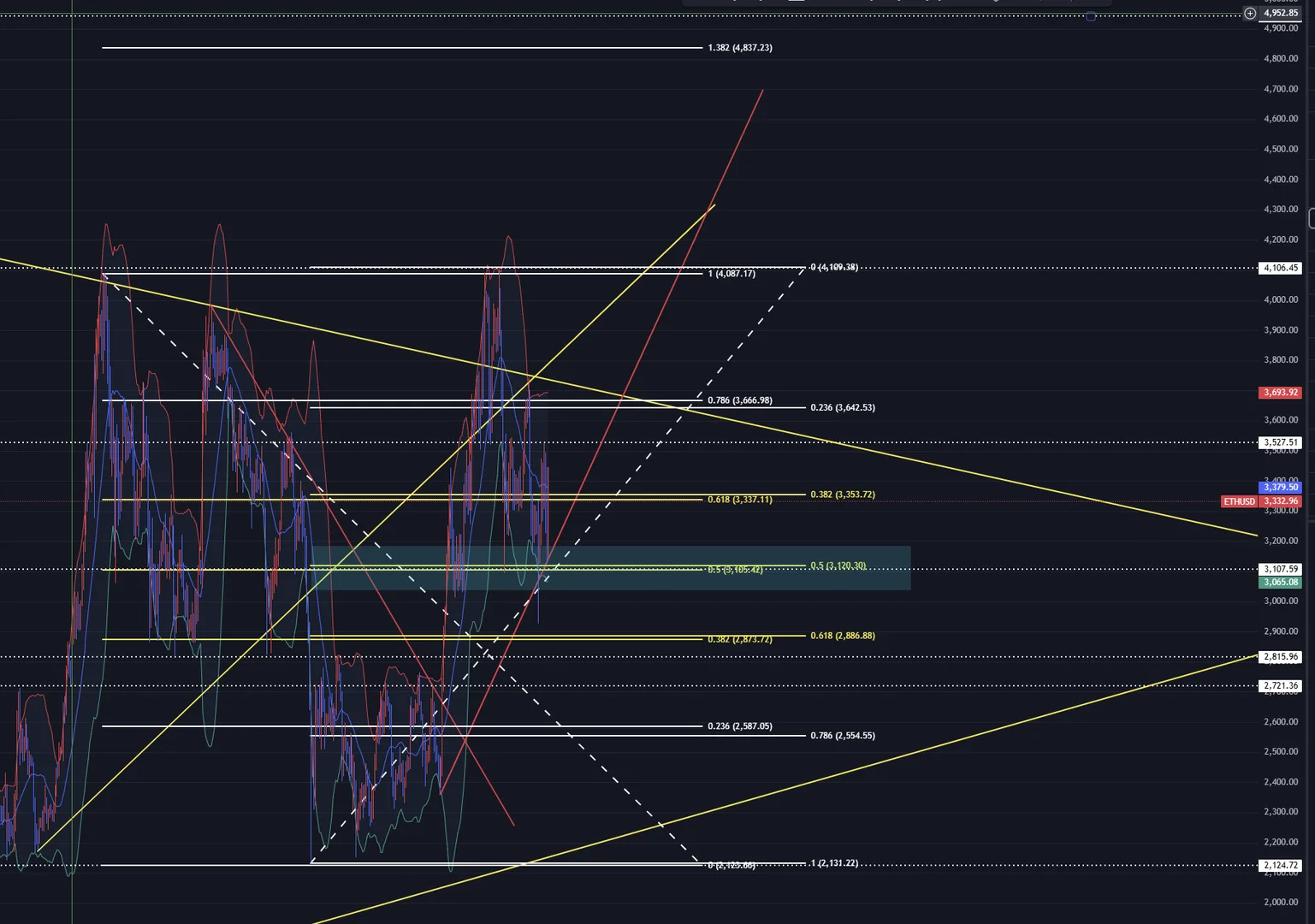 아래 3가지의 근거가 겹치는 부근인 2,886 ~ 3,120에서 포지션 잡아도 좋을 것 같습니다.