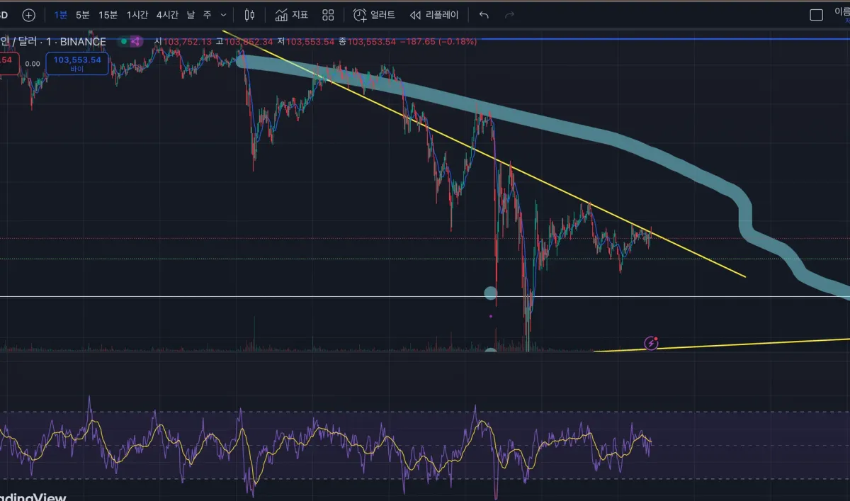 단기적인 1분봉으로는 하락추세선에 걸맞는 행보를 보이고 있어서, 단타로 트레이딩을 할 경우엔