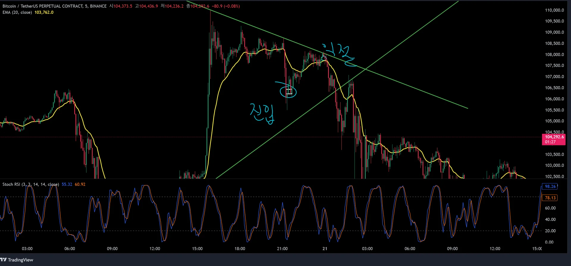 스토캐스틱 rsi 과매도 상태일때 진입하여 과매수 부근에서 익절 했습니다.. 진입과 익절을 잘했는지 모르겠지만 ㅠ 나름 공부한 토대로 진입하여 익절까지 했습니다.