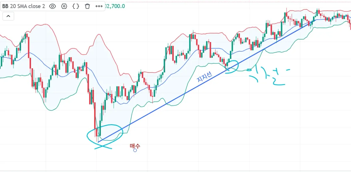 모의 투자로 RSI 30선을 내려가서 매수하고 지지선을 건들어서 살짝 놀라 익절 했습니다.(과제 늦어서 죄송합니다. 카톡채널방 통해서 양해 드리고 올립니다.)