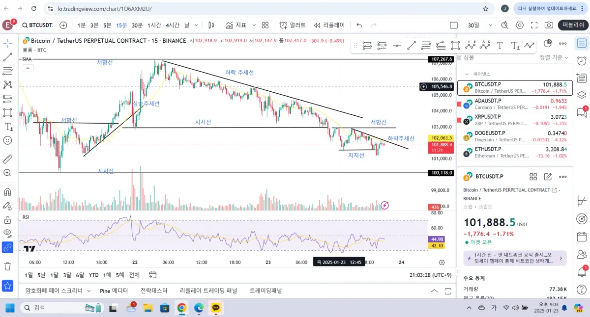 15분 봉으로 확실하진 않지만 보이는 부분 작도 해 보았습니다.
