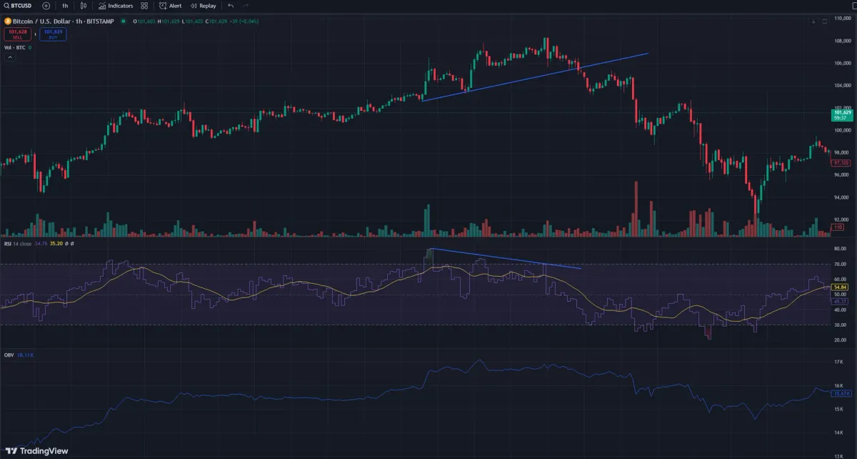 하락 다이버전스가 발생한 것으로 보이는 구간도 작도해보았습니다.