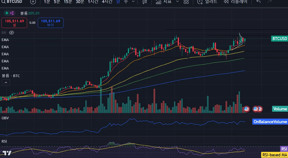 오늘 배운 RSI와 OBV지표를 설정했습니다