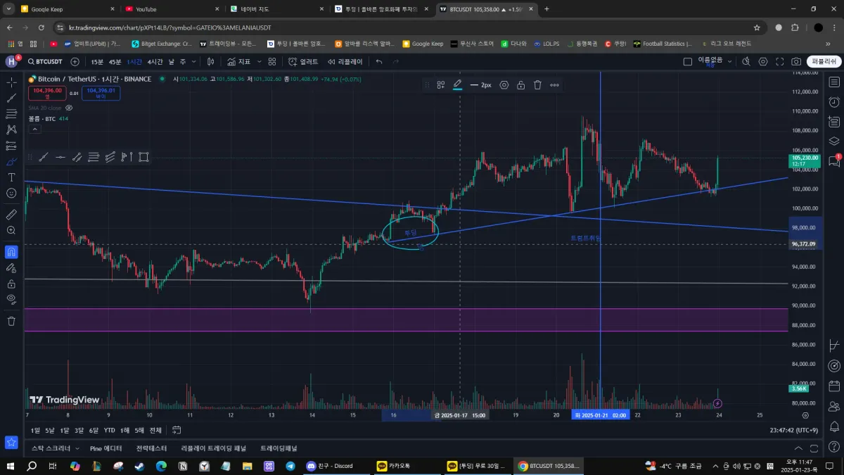 [30일 챌린지 12기 1주차] 기술적 분석 Chapter02 3강 : 지지 저항과 추세선 상승추세에서의 저점과 저점을 이은 추세선입니다! 현재 지지로 작용하는 중입니다!