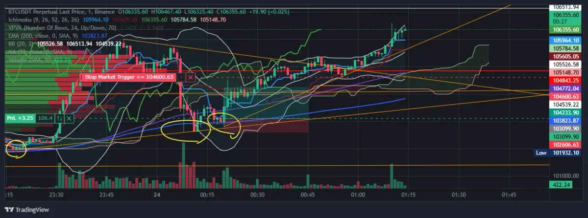 볼밴 중심선을 하회하면 익절하기 위해 계속 익절로스를 올리다가 익절하고 나오게 됐습니다.