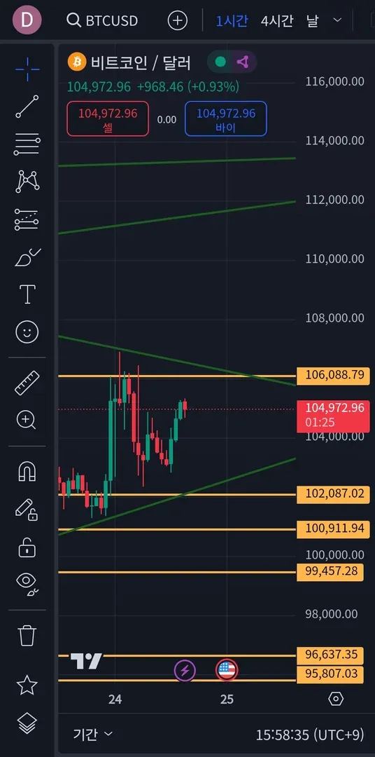 삼각수렴, 볼밴 위에있으면서 윗저항을 터치하러 갈러같아서 롱으로 진입 상단저항선에서 익절스탑을 걸어놨더니 현재 13프로 수익중입니다. 분할익절하면서 지켜보겠습니다.