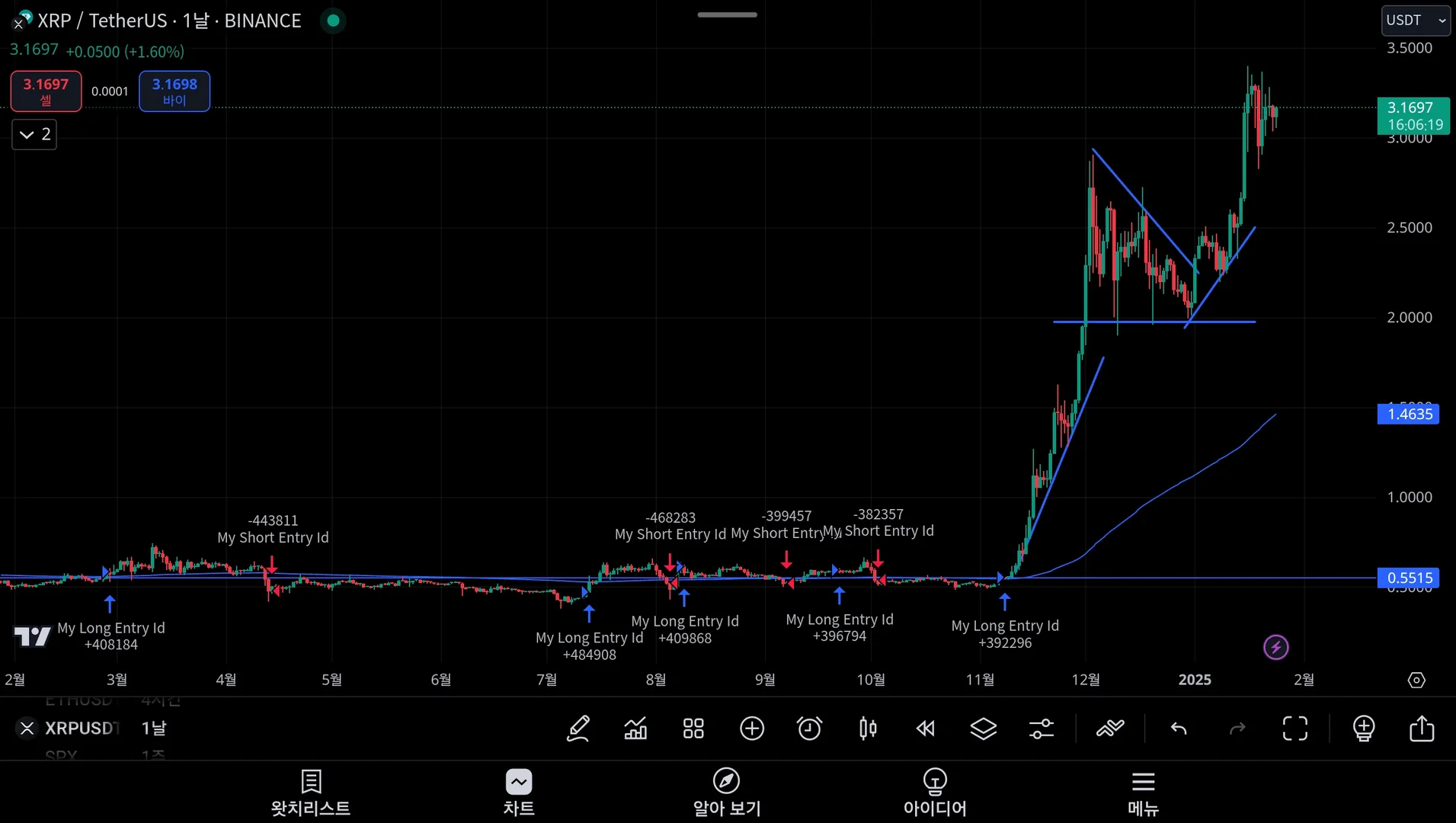 요즘 다시 핫한 리플 일봉 차트 작도하였으며